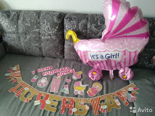 Набор на встречу из роддома для девочки (растяжка, магнитные наклейки, можно на машину и фальгированный шар-коляска) Состояние: Б/у BuyReklama.ru