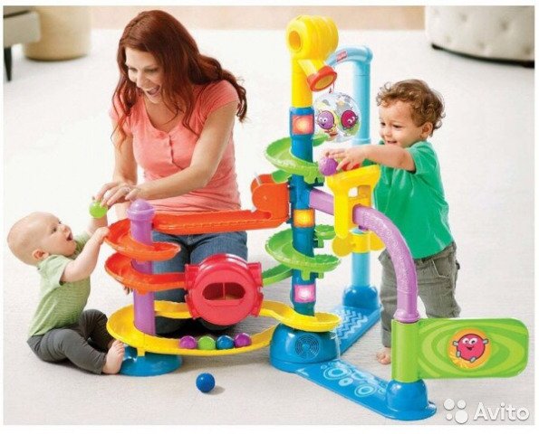 В комплект входят разноцветные шарики, которые можно бросать в различные отверстия. Шарики движутся по спирали. Ползунок бросает и догоняет шары, проползая через арочные отверстия. Шарики можно кидать с разных уровней, как сидя, так и стоя. Ребёнок будет вовлечён в одно из увлекательнейших путешествий , в котром можно наблюдать за движением шаров, окрывать для себя новые варианты игры с шарами, пушкой и многочисленными лабиринтами;