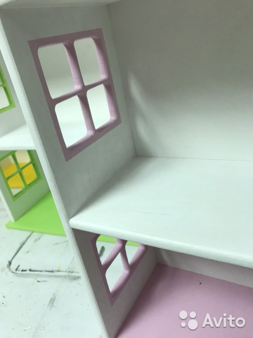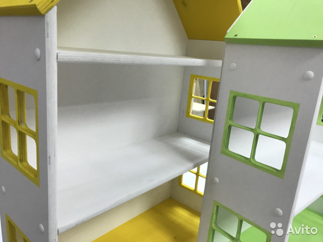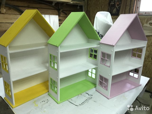 Кукольный домик Цвета жёлтый зелёный розовый -ширина домика 50, Высота 72,глубина домика полки 16 см,Расстояние между палками 20 см Состояние: Новый BuyReklama.ru