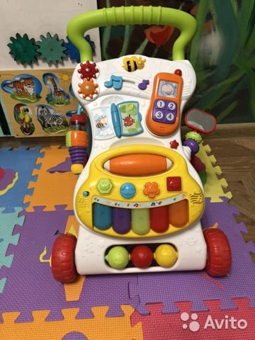Ходунки-каталка BabyGo помогут малышу сделать первые шаги, а игровой центр cо звуковыми и световыми эффектами развлечет и поможет развитию зрительно-моторной координации.
