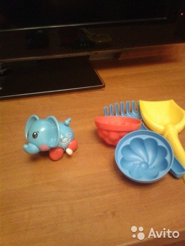 набор муз.игрушек-100,заводная машинка-слоник -100руб-ПРОДАНА!.лопатка грабли формочки новые-100руб
