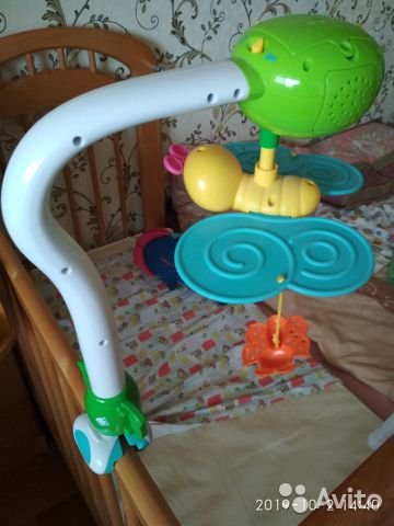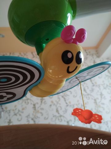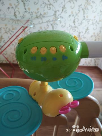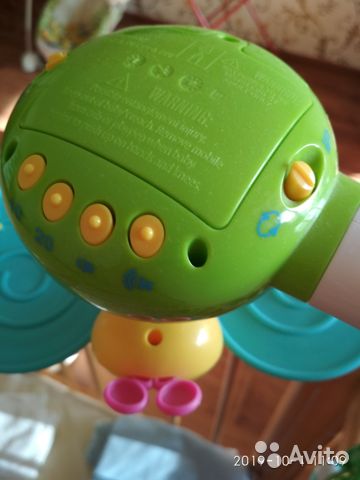 Яркий дизайн, симпатичный. Мелодий много (по моему их 8), музыка классическая, шум моторчика отсутствует, даже если музыка включена на минимум. Громкость можно менять, можно убрать. И будет просто бабочка крутится. Можно просто музыку слушать. Музыка приятная не навязчивая. Отличный помощник мамам и папам!!! Батарейки АА