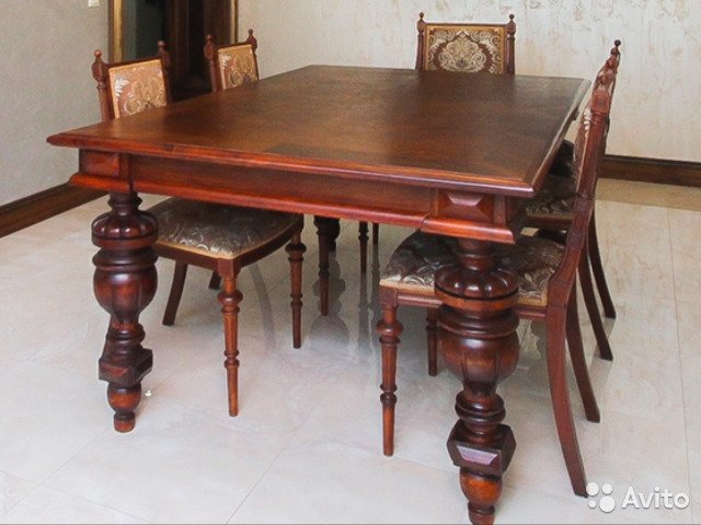 В комплекте: стол на 6 персон,4 стула,два кресла.