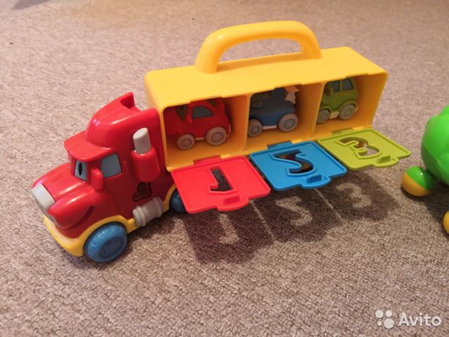 Срочно продам музыкальные игрушки, в очень хорошем состоянии. Машина с прицепом (отсоединяется), при движении звучит песня, в комплекте ещё 3 маленькие машинки (учим счёт). Овечка двигается и звучит мелодия. За обе игрушки 500р.
