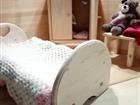 Комплект мебели для кукол из массива дерева. Мечта каждой девочки и отличный подарок на любой праздник. Комплект выполнен для куклы Бэбибон ( рост 43 см). Также можно приобрести все по отдельности. Кровать 20*50 см 700 рублей Шкаф, кстати внутри есть даже плечики для одежды ...