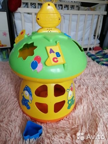 Домик сортер большой, музыкальный, ушки моргают, единственное осталось одна делать все остальные найти не смогли. Но можно бросать другие, мы бросали крышки маленькие ребёнку нравилось сейчас перестала играть. Пишите в сообщение на звонок на звонок могу не ответить