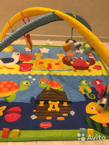 Продам развивающий коврик фирмы “tiny love” в идеальном состоянии. В комплекте зеркало, игрушка-пеликан, колечки, музыкальная игрушка крабик, игрушка грызунок- держатель, шебуршащая игрушка.