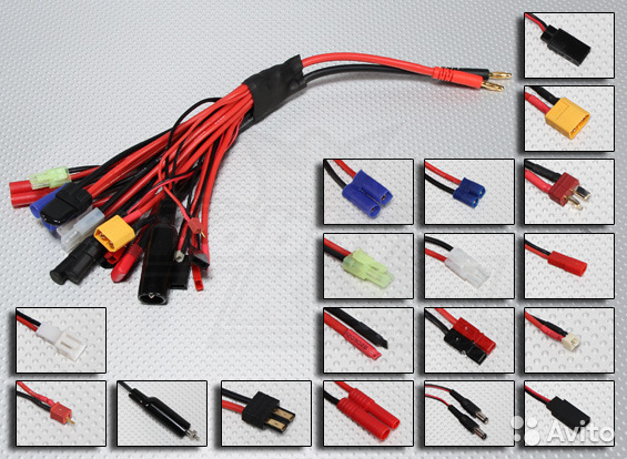 два комплекта переходников на 19 типов аккумуляторных разъемов.